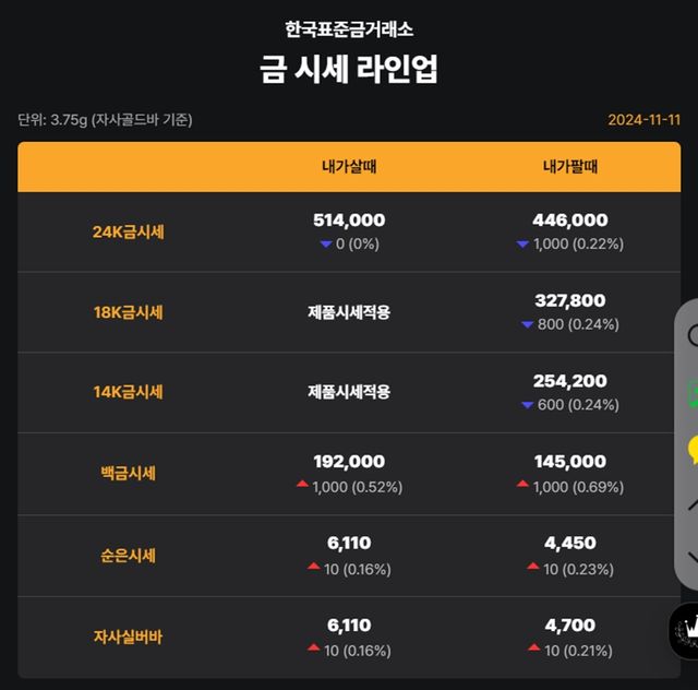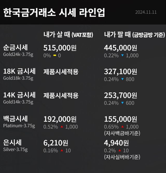 순금(24K) : 매입가 51만 5000원 / 매도가 44만 5000원