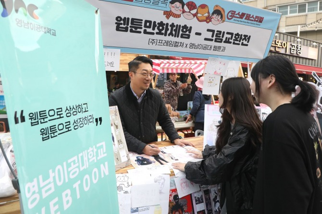 이날 페스티벌에 참가한 영남이공대 웹툰과는 그림 교환전과 웹툰 그리기 체험, 웹툰 캐릭터 포토존을 통해 지역 주민과 함께했다.