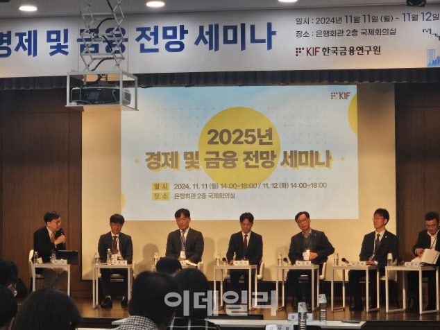 11일 서울 중구 은행회관에서 한국금융연구원이 주최한 ‘2025년 경제 및 금융 전망 세미나’에서 박춘성 금융연구원 거시경제연구실장은 “우리나라의 내년 실질 GDP 성장률이 2.0% 성장할 전망”이라며 “2025년에는 내수가 일부 개선될 것으로 예상하지만 건설투자의 부진이 지속하고 수출이 둔화할 것”이라고 밝혔다.