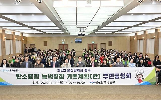 울산 중구는 11월 11일 오후 2시 중구청 대회의실에서 ‘제1차 울산광역시 중구 탄소중립·녹색성장 기본계획(안)’주민공청회를 개최했다.