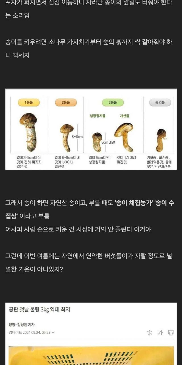 폭염으로 ㅈ되버린 자연산 송이 버섯 시장