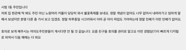 63빌딩 바로 앞에다가 불꽃축제가 직빵으로 보이는 시범아파트는 고생좀 한것 같음