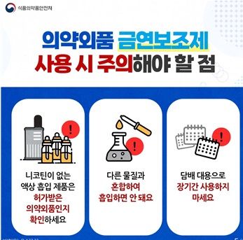 이들 제품 사용 시에는 용법·용량, 사용상의 주의사항 등을 먼저 확인한 후 사용하고, 담배 대용으로 장기간 사용하지 않도록 주의한다.
