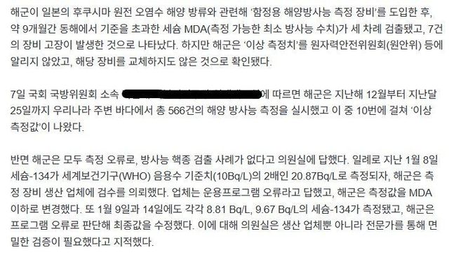 - 그러나 작년 12월부터 지난달까지 음용기준치의 2배에 달하는 세슘-134가 3차례 검출