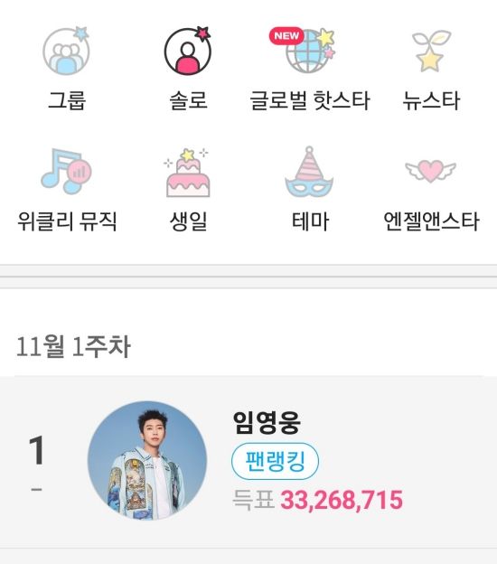 최근 '팬앤스타'에 따르면, 임영웅은 11월 1주 차 솔로가수 인기 랭킹 투표에서 1위에 등극했다.