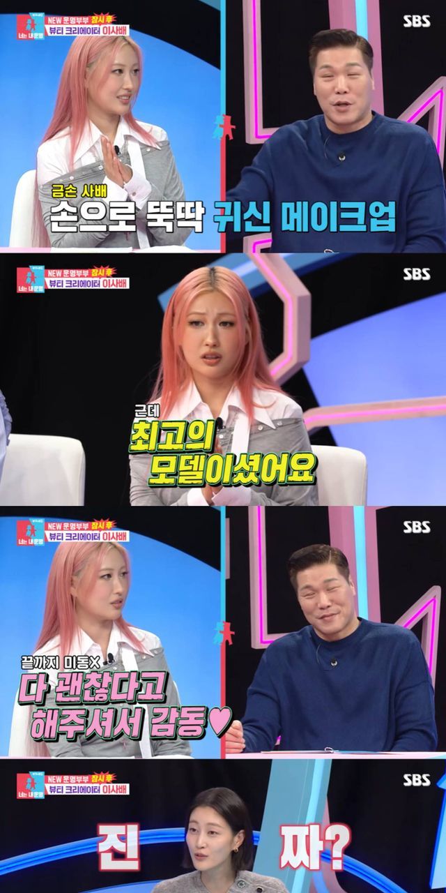 이에 이사배는 "최고의 모델이었다. 움직이지 않으시고"라며 "피가 살짝 눈에 들어갔는데도 움직임 없이 괜찮다고 해서 고마웠다"고 전했다. 이지혜가 "미담이네"라고 반응하자, 서장훈은 "미담이 아니라 아무 생각이 없었다"며 멋쩍어했다.
