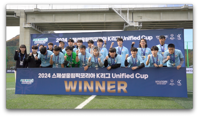 올해로 4회째를 맞은 K리그 유니파이드컵은 발달장애인 선수와 비장애인 파트너 선수들이 한 팀을 이뤄 경기하는 통합축구 기반 대회다. K리그 각 구단 산하 통합축구단 11개 팀(연맹, 경남, 대구, 대전, 부산, 부천, 성남, 인천, 전남, 제주, 포항) 약 260명이 나선 가운데 지난 11월 8일부터 10일까지 충청북도 충주 수안보 생활체육공원에서 진행됐다.