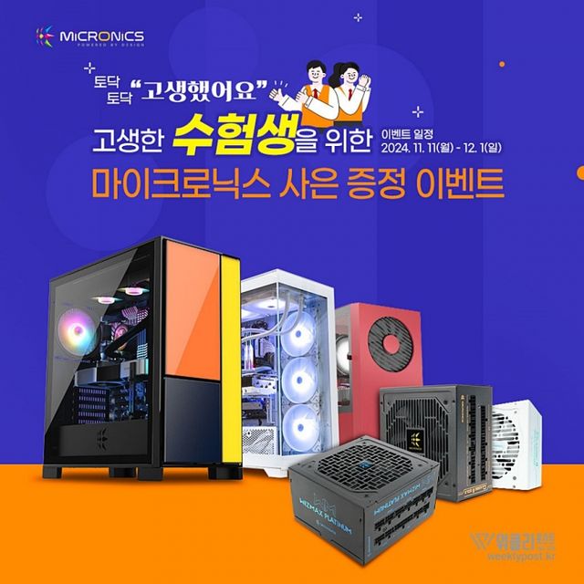 프로모션은 2024년 11월 11일부터 12월 1일까지 약 3주간 진행되며, 마이크로닉스 파워서플라이와 PC 케이스를 함께 구매하면 추가 사은품이 지급된다. 행사 제품은 마이크로닉스의 모든 파워서플라이 및 PC 케이스 제품이다. 단, 쿨맥스 브랜드는 제외됐다.