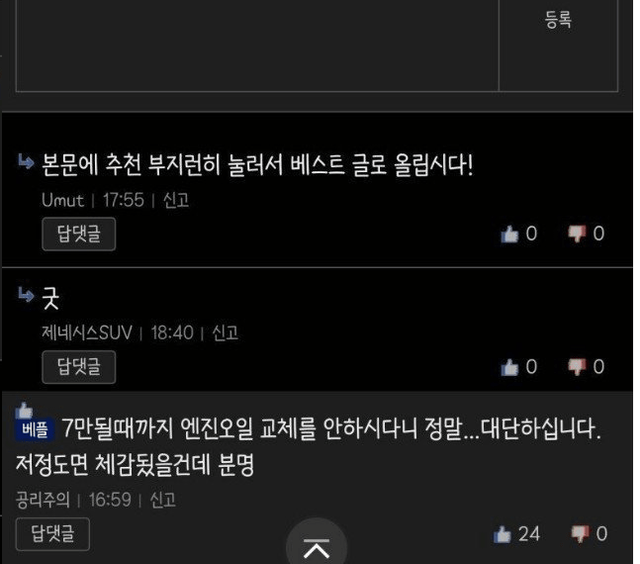 7만이나 탔는데 엔진 오일을 한 번도 갈지 않았다고 함...