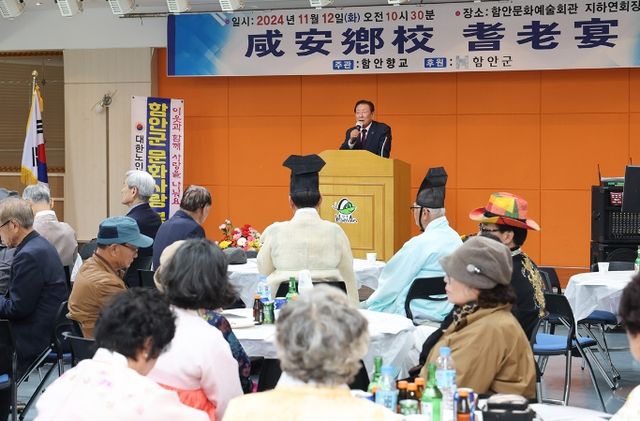 [파이낸셜경제=김영란 기자] 함안군은 12일 함안문화예술회관 연회장에서 70세 이상 지역 유림과 어르신들을 모시고 함안향교와 칠원향교 주관으로 기로연 행사를 개최했다.