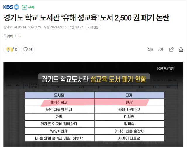 올해 경기도에서 유해도서로 지정되어 도서관에서 전부 폐기됨