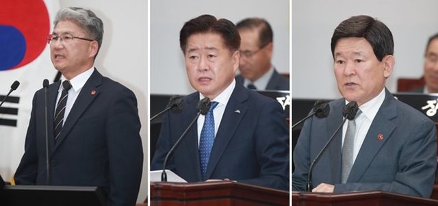 이상봉 제주도의회 의장, 오영훈 제주지사, 김광수 제주도교육감(왼쪽부터). 제주도의회 제공