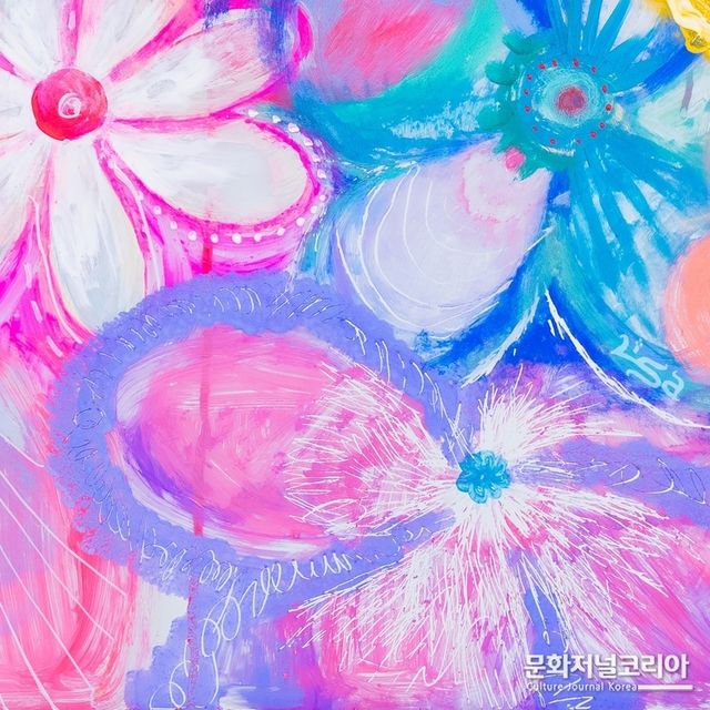재활용 거울을 활용해 이색적인 작업을 시도한 리사는 “유리라는 차가운 소재 위에 그림을 그리며 따뜻한 느낌으로 변하는 과정도 재미있는 포인트다. 유리 위에 물감을 얹으면 스며들지 않아 물감이 쉽게 벗겨지는데, 계속해서 덮고 덮으며 물감을 얹는 과정이 손길을 한 번 더 주고 정성을 쏟는 느낌이다”라고 의미 있는 작업 소회를 전했다.