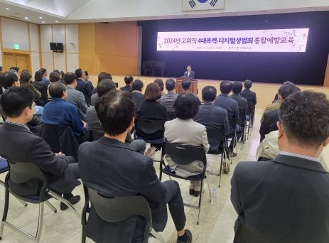 [파이낸셜경제=김영란 기자] 충주시는 12일 5급 이상 고위직 공무원 80여 명을 대상으로 4대폭력(성희롱, 성폭력, 가정폭력, 성매매) 통합 예방 교육을 시청에서 실시했다.