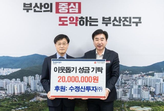 | ▲ 부산진구에 수정산투자(주), 이웃돕기 성금 2,000만원 전달 |