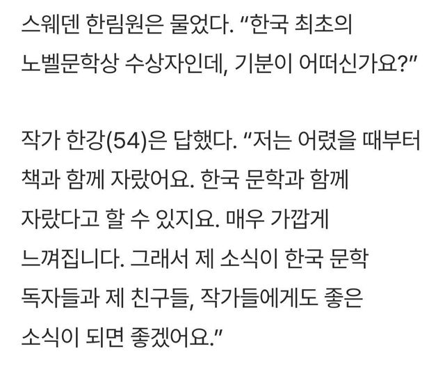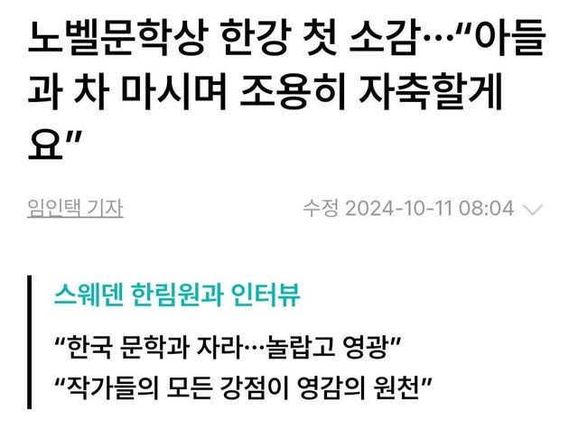 아시아 여성 최초 노벨문학상을 받았어도 가족과 차 한 잔으로 자축..! 한강다운 수상소감