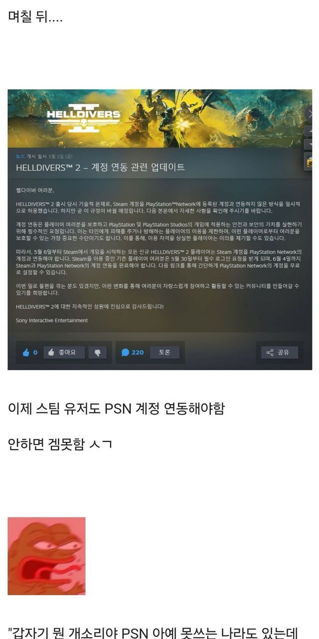 헬다이버즈2 스팀 평점이 순식간에 나락간 이유