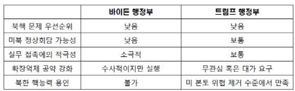 트럼프 당선인이 김 위원장을 배척할 수 있다는 관측도 나온다. 조한범 통일연구원 석좌연구위원은 “트럼프는 북핵 현실화를 인정하고, 핵군축 회담을 할 것”이라며 “다만 재선의 부담이 없는만큼 김정은을 사람 취급하지 않을 수도 있다”고 주장했다.