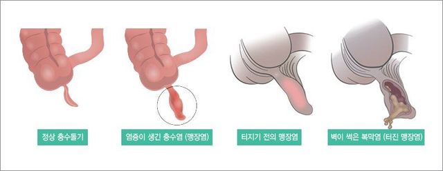 배를 갈라서 충수를 잘라내야만 치료가 가능함