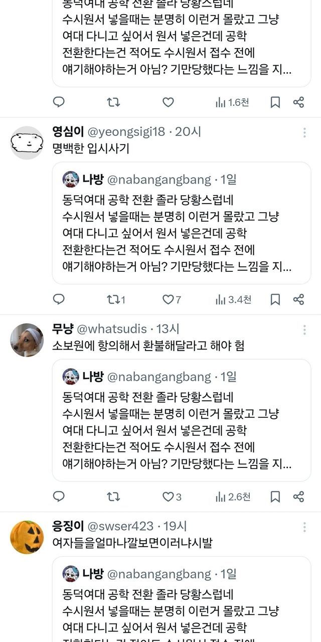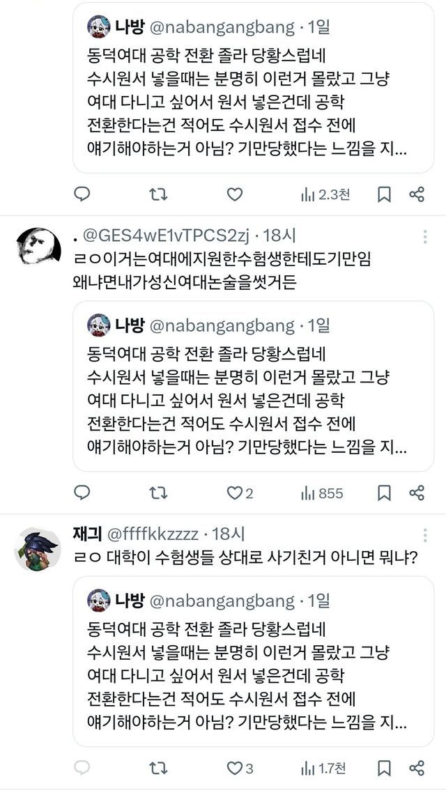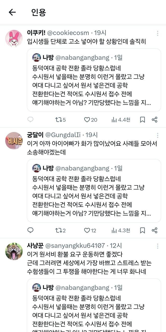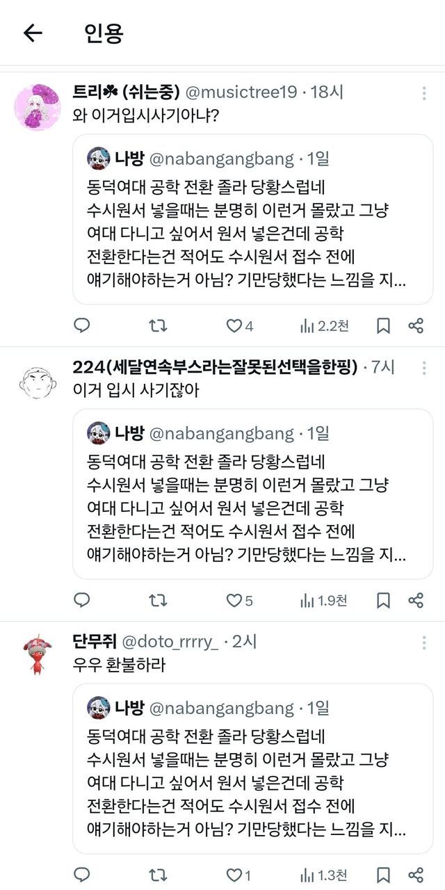 공학 전환은 입시 사기라고 시끄러운 트짹이들:)