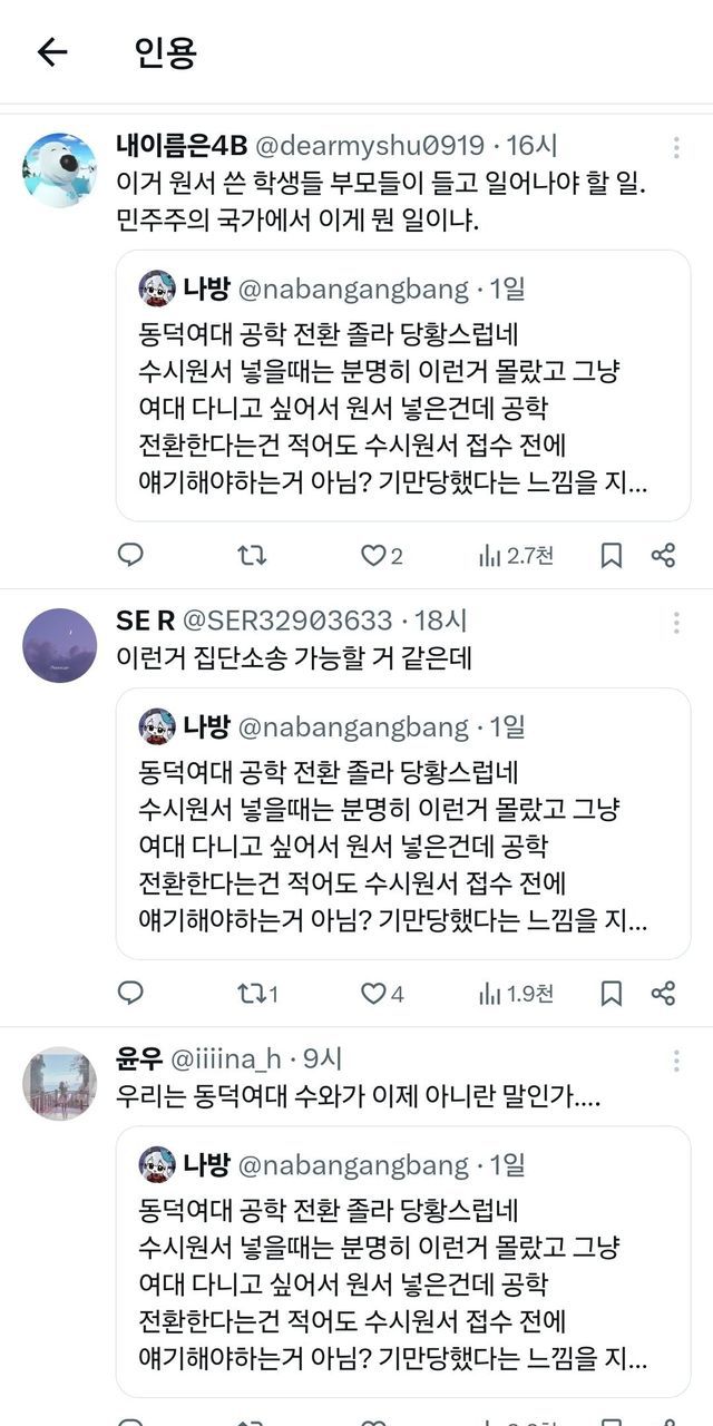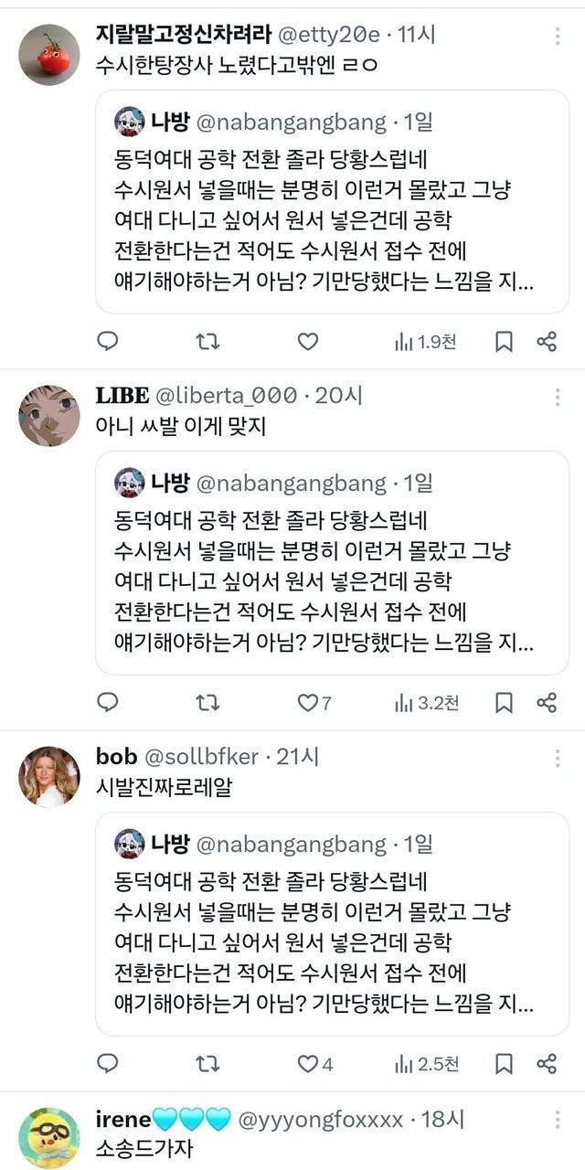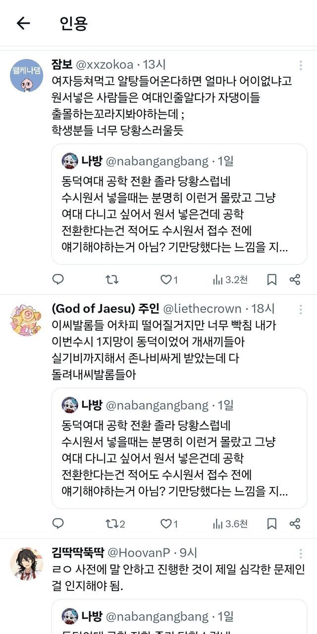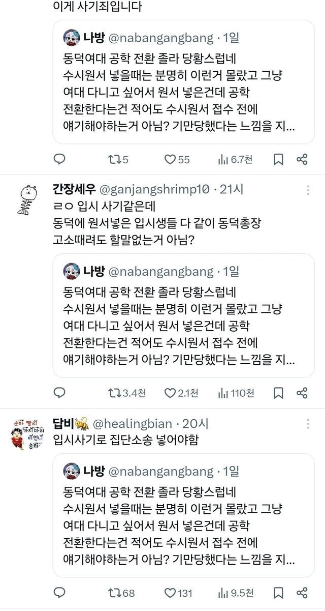 공학 전환은 입시 사기라고 시끄러운 트짹이들:)