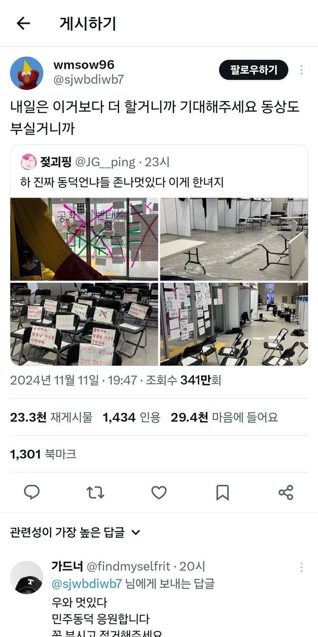 동덕여대에서 청소하시는 친구어머니 걱정하는 사람 등장