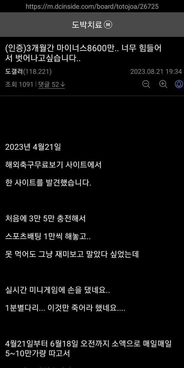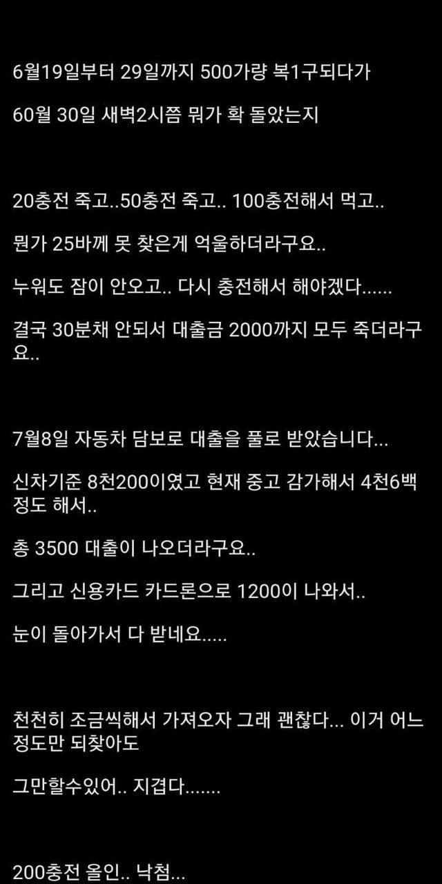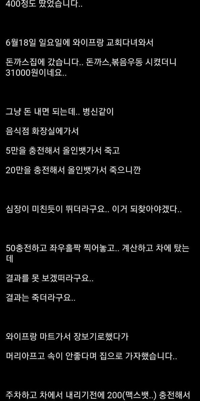 아내 몰래 도박에 8600만 원 털어넣은 중독자.