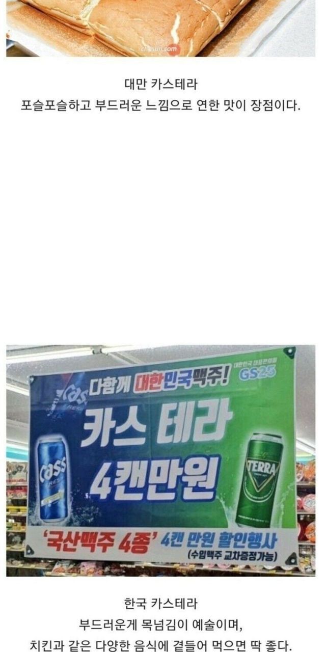 일본,대만,한국의 카스테라 비교.