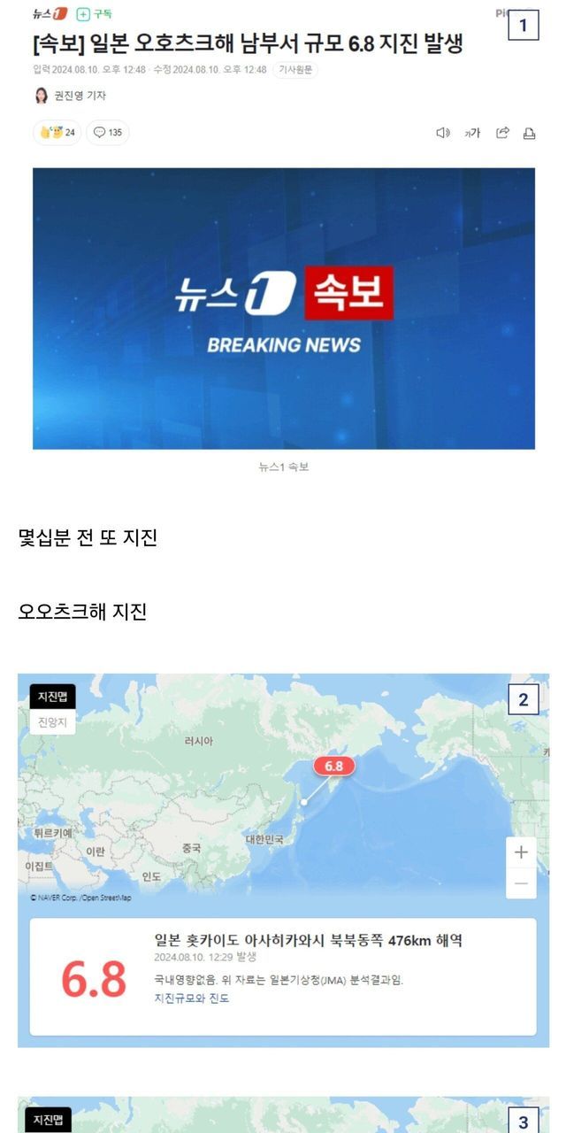 수상한 3일 연속 일본 지진 ㄷㄷ.