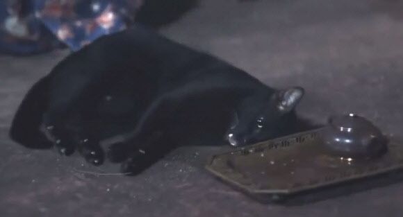 문제의 장면은 한 여성이 차에 독이 들었는지 시험하기 위해 고양이 앞에 놓인 쟁반에 차를 부어 먼저 마시게 하는 모습이 담겼다. 고양이는 차를 마시고 곧 바닥에 쓰러져 웅크린 채 몸을 부르르 떨었고, 놀란 여성들은 충격에 빠지며 “죽었어”라고 말한다. 이 장면은 컴퓨터 그래픽(CG)이 아닌 실제 고양이를 데려와 촬영했다.