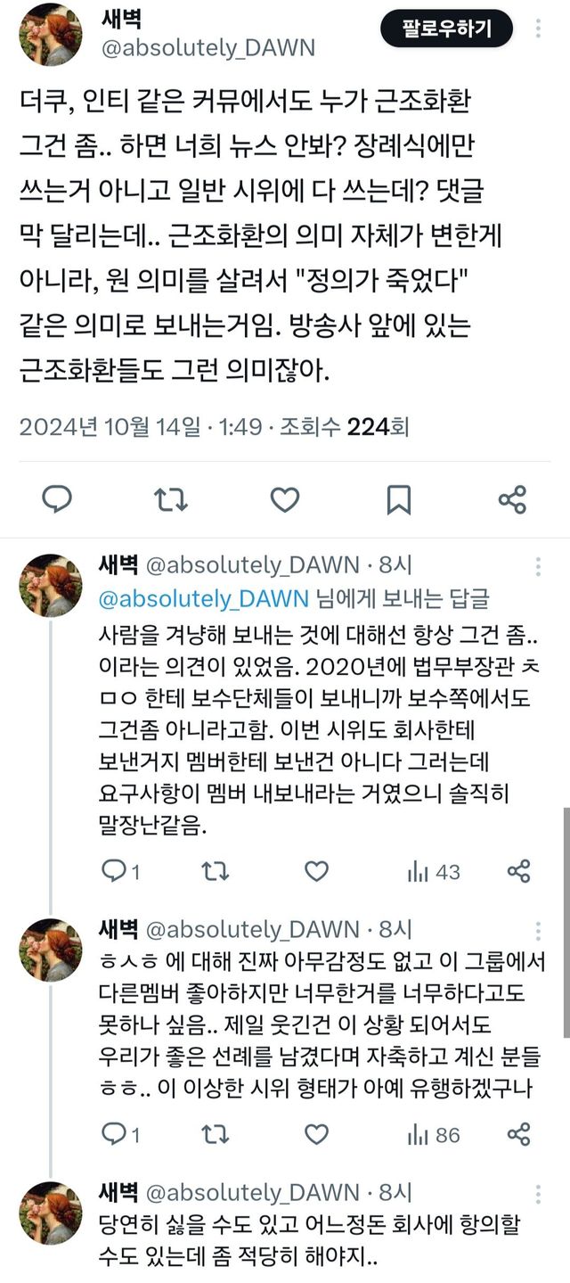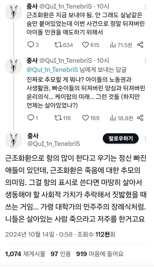 아이돌 퇴출 시위에 근조화환 다발로 보낸거 솔직히 기괴함