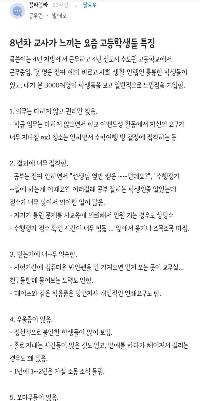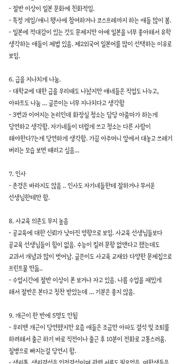 8년차 교사가 느끼는 요즘 고등학생들 특징