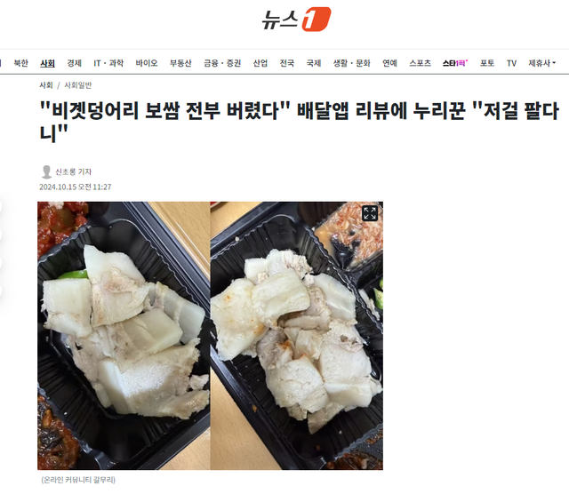 보쌈을 주문했더니 비곗덩어리만 한가득이었다는 배달앱 리뷰가 공개됐다.