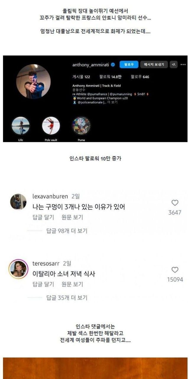 탈락한 프랑스 장대높이뛰기 선수 근황.