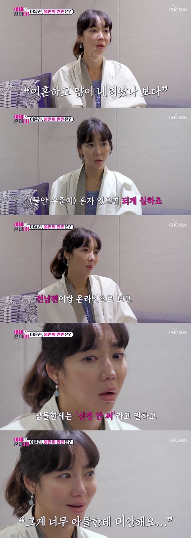 지난 12일 방송된 TV조선 '이제 혼자다'에서는 이윤진이 정신건강의학과를 방문해 상담을 받았다.