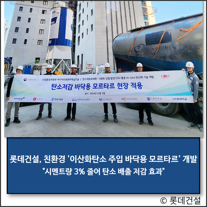 롯데건설이 한일시멘트와 함께 '이산화탄소 주입 바닥용 모르타르 기술'을 개발했다.