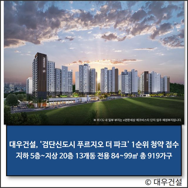 한편 검단신도시 푸르지오 더 파크는 인천 서구 검단신도시 일원에 지하 5층~지상 20층 13개동 총 919가구 규모로 조성되며, 전용면적은 84~99㎡이다.