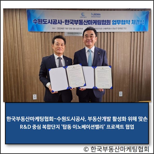 한국부동산마케팅협회가 지난 11일 수원도시공사와 부동산 개발 활성화와 상생 발전을 위한 양해각서를 체결했다.