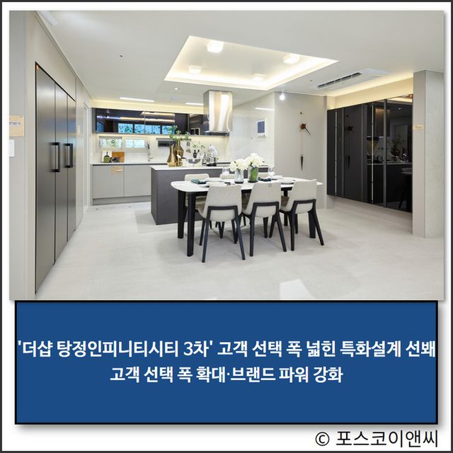 포스코이앤씨가 충남 아산에서 공급하고 있는 '더샵 탕정인피니티시티' 1~3차가 다양한 설계 특화를 선보이고 있다.