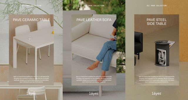레이어의 첫 컬렉션은 ‘기반, 기초를 닦다’라는 의미를 담은 ‘페이브’(pave)다. 본질에 집중해 공간의 견고한 첫 층이 되는 기본적인 역할이다.