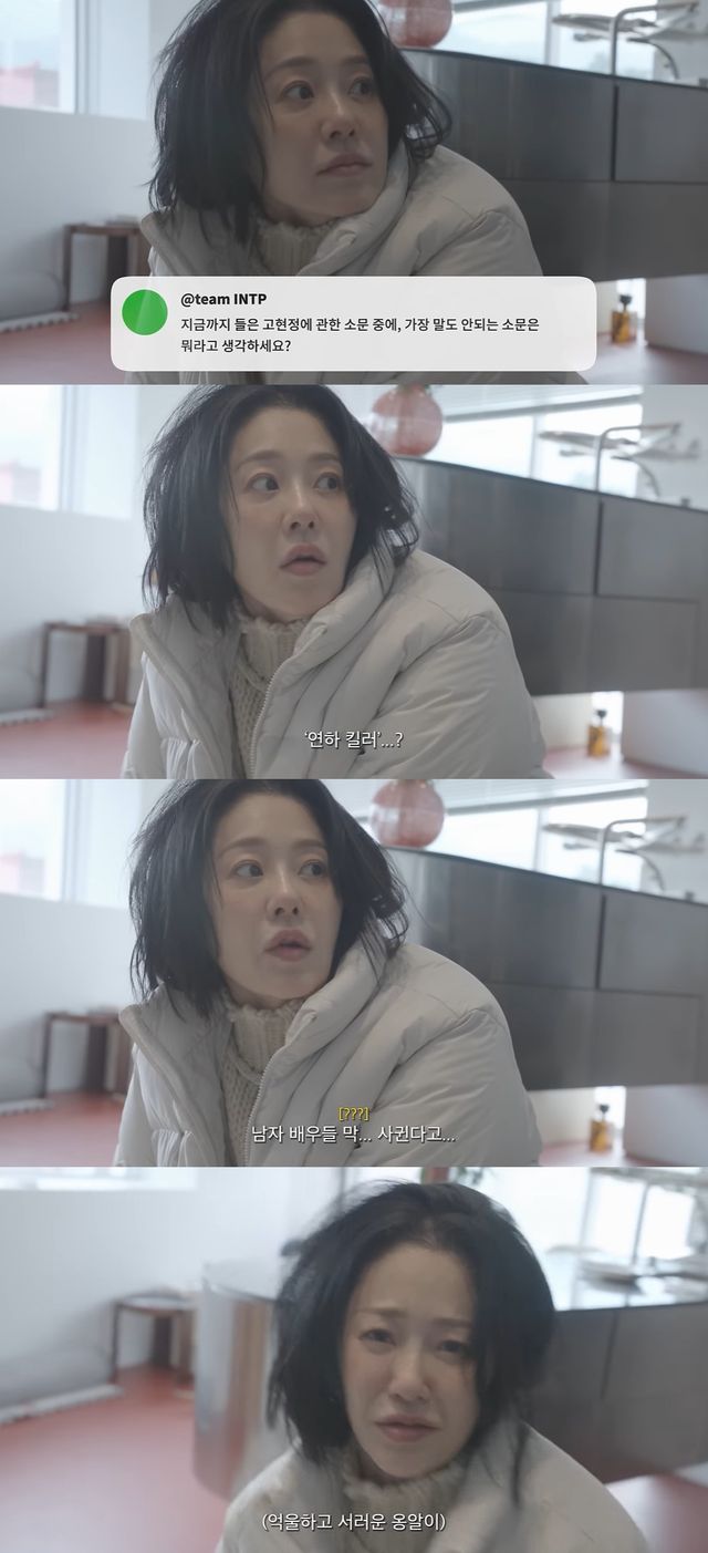 고현정은 "남자 배우들 막 사귄다고. 그건 진짜 말도 안돼"라고 울상을 지었다.