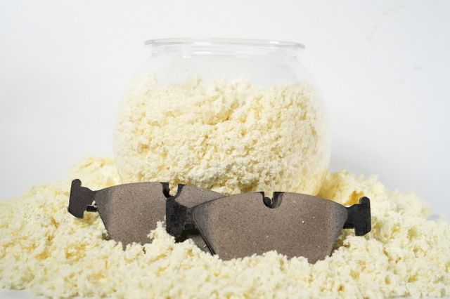 코오롱인더스트리 아라미드 펄프 제품과 이를 적용한 브레이크 패드. ⓒ 코오롱인더스트리