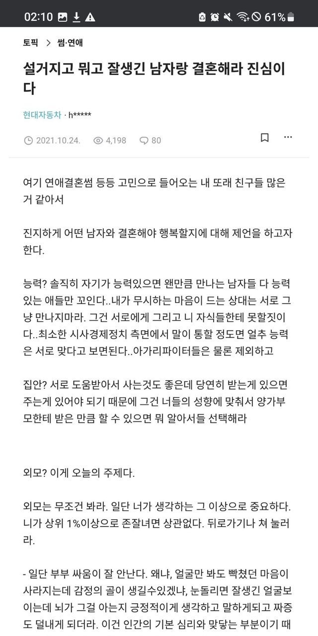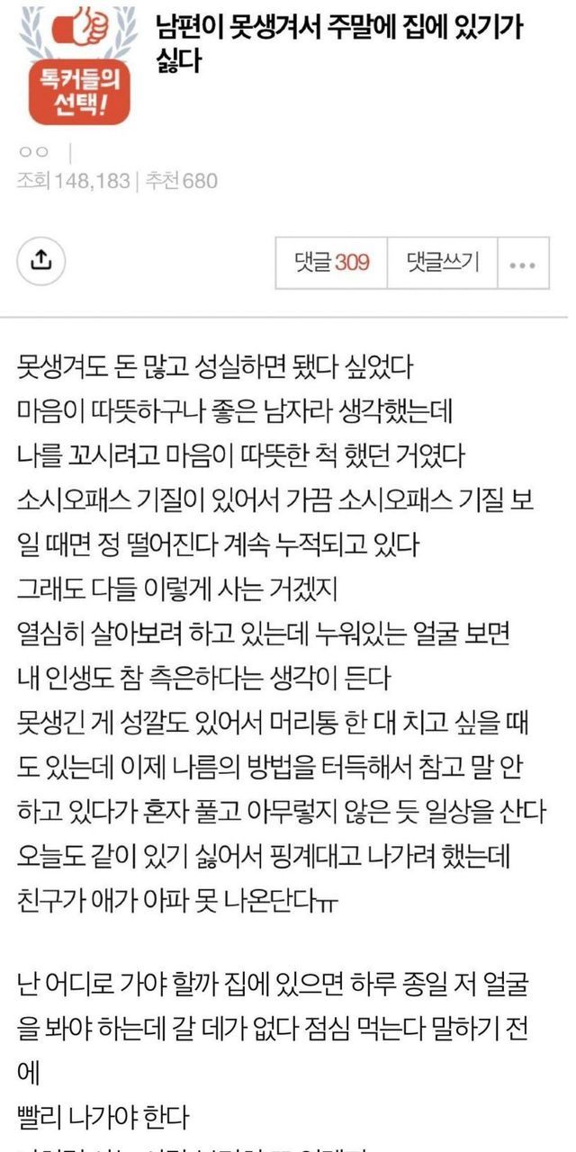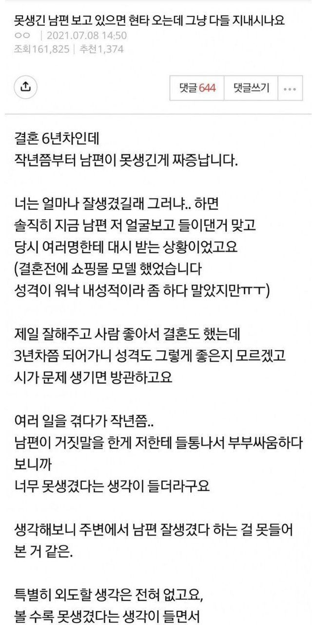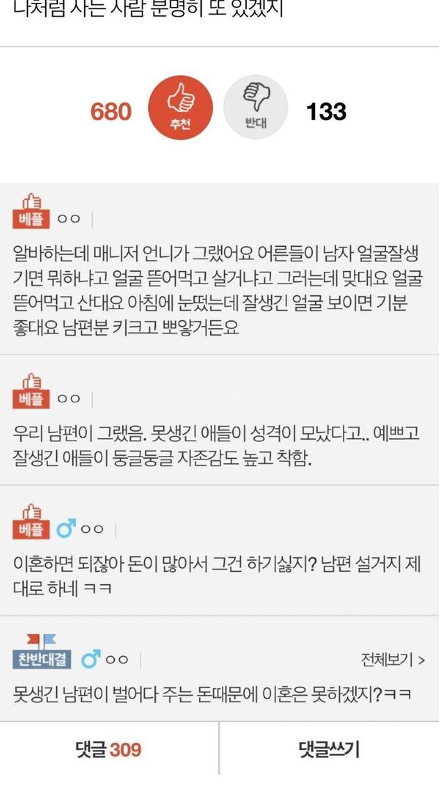 남편 외모에 여자 성격이 달라진다.