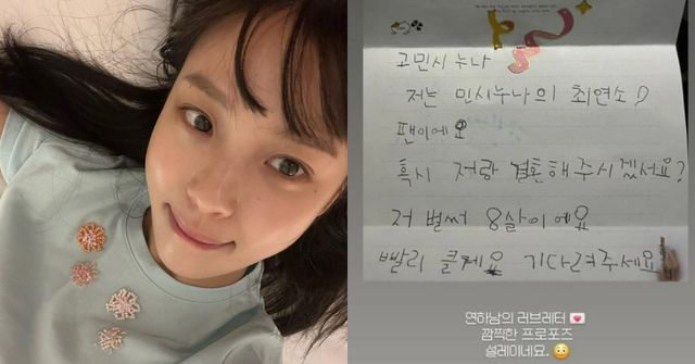 고민시가 지난 12일 자신의 인스타그램에 "연하남의 러브레터. 깜찍한 프러포즈 설레네요"라는 글과 함께 사진 한 장을 게재했다.