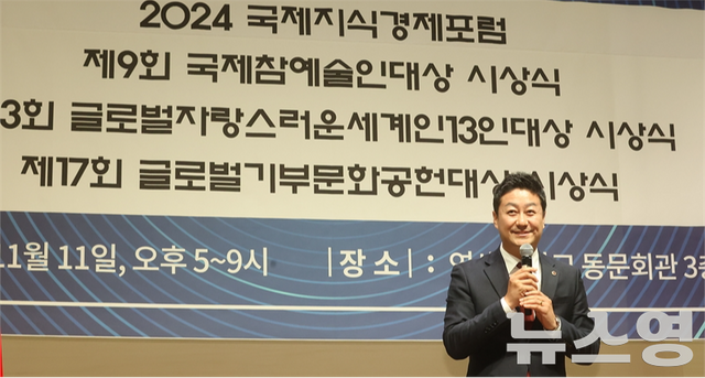 (경기=뉴스영 공경진 기자) 김진경 경기도의회 의장(더불어민주당, 시흥3)이 지난 11일 열린 ‘제13회 글로벌 자랑스러운 세계인 대상’ 시상식에서 전국 광역의회 의장 중 유일하게 ‘지방의회 공헌’ 부문 수상자로 선정되는 영예를 안았다. 이 상은 (재)국제언론인클럽이 주최하며, 국익과 사회 발전에 기여한 인재를 선정해 수여하는 것으로, 김 의장은 의장으로서의 헌신적인 활동과 지역사회에 대한 기여를 인정받았다.
