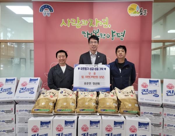 권용진 용문면장은 “도움의 손길이 필요한 취약계층을 위해 기부해주신 용문면 청년회의 따뜻한 마음에 감사드린다”며 “기탁받은 라면과 쌀은 필요한 이웃들에게 따스한 마음 담아 전달하도록 하겠다”고 말했다.