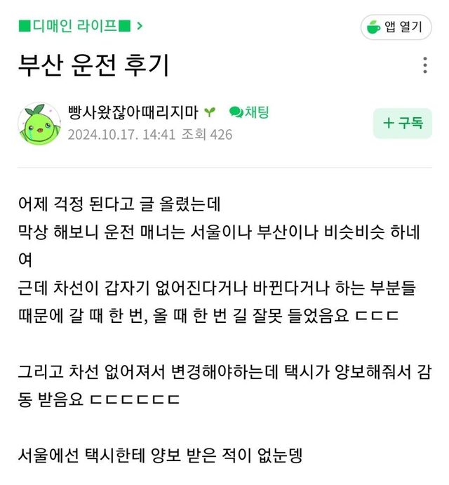 부산처럼 좁고 복잡할테니까 반대로 부산 사람이