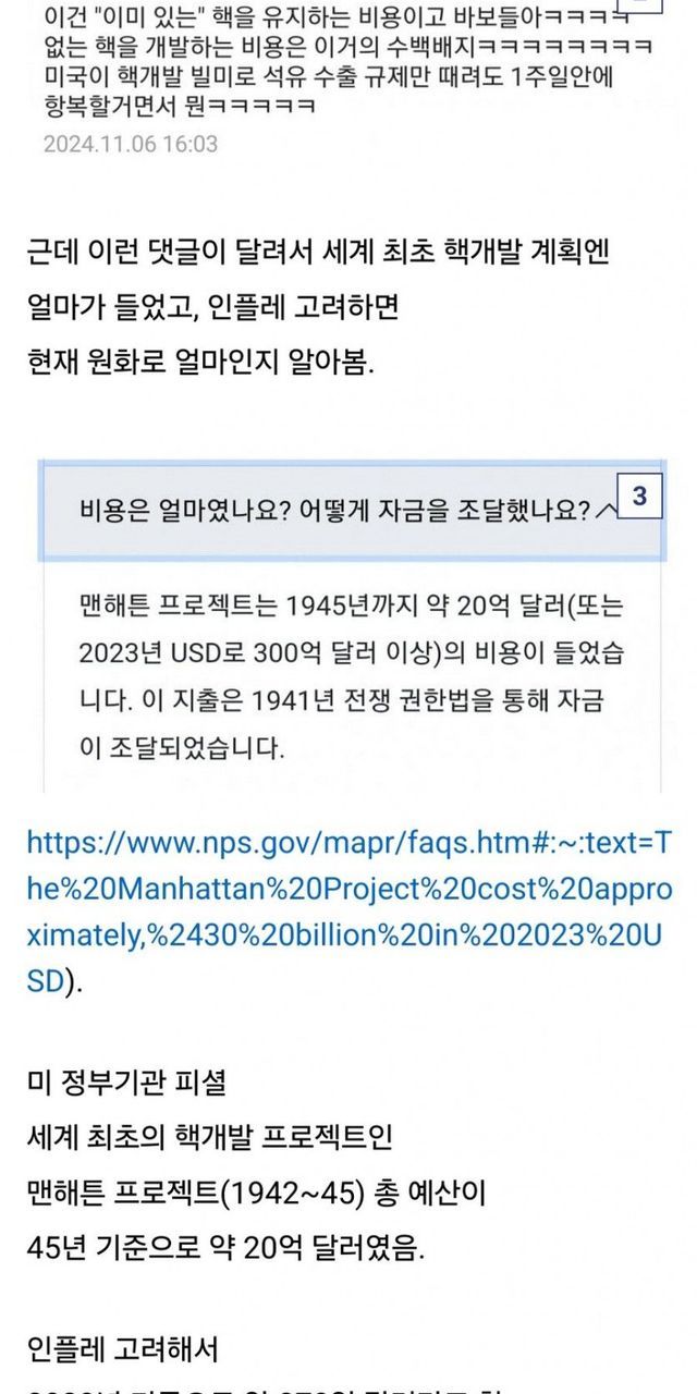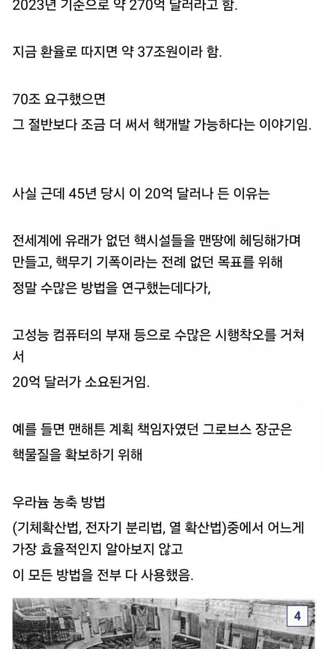 미국의 최초 핵개발 당시 들어간 돈