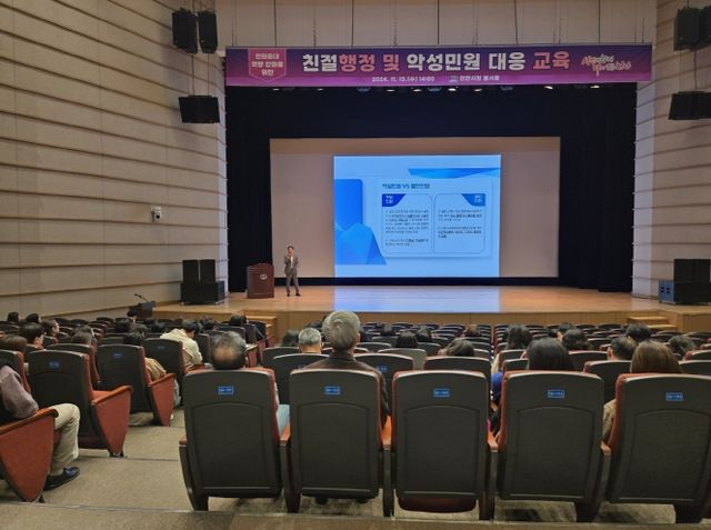 | ▲ 천안시는 13일 시청 봉서홀에서 전 부서 담당자 200여 명을 대상으로 민원응대 교육을 실시했다. |