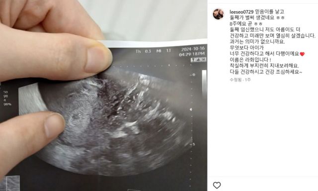 이후 아름을 지난 4일 넷째 임신 소식을 전했다. 아름은 “믿음이를 낳고 둘째가 벌써 생겼네요. 8주예요 곧. 둘째 임신했으니 저도 아름이도 더 건강하고 미래만 보며 열심히 살겠습니다”라고 적었다.